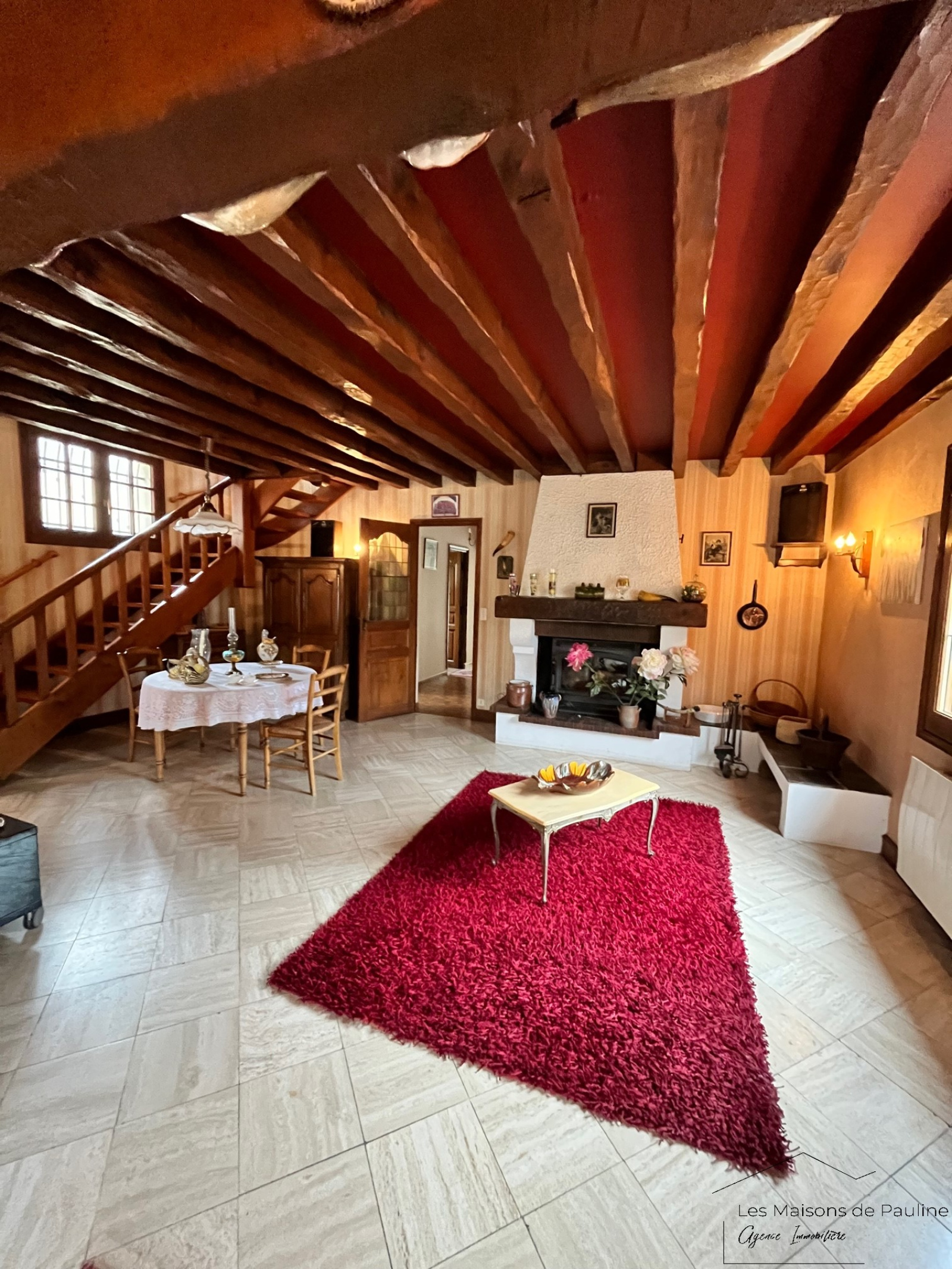 Vous découvrirez au rez de chaussée un grand séjour salon avec cheminée insert, une cuisine séparée, une chambre et une salle de douche.